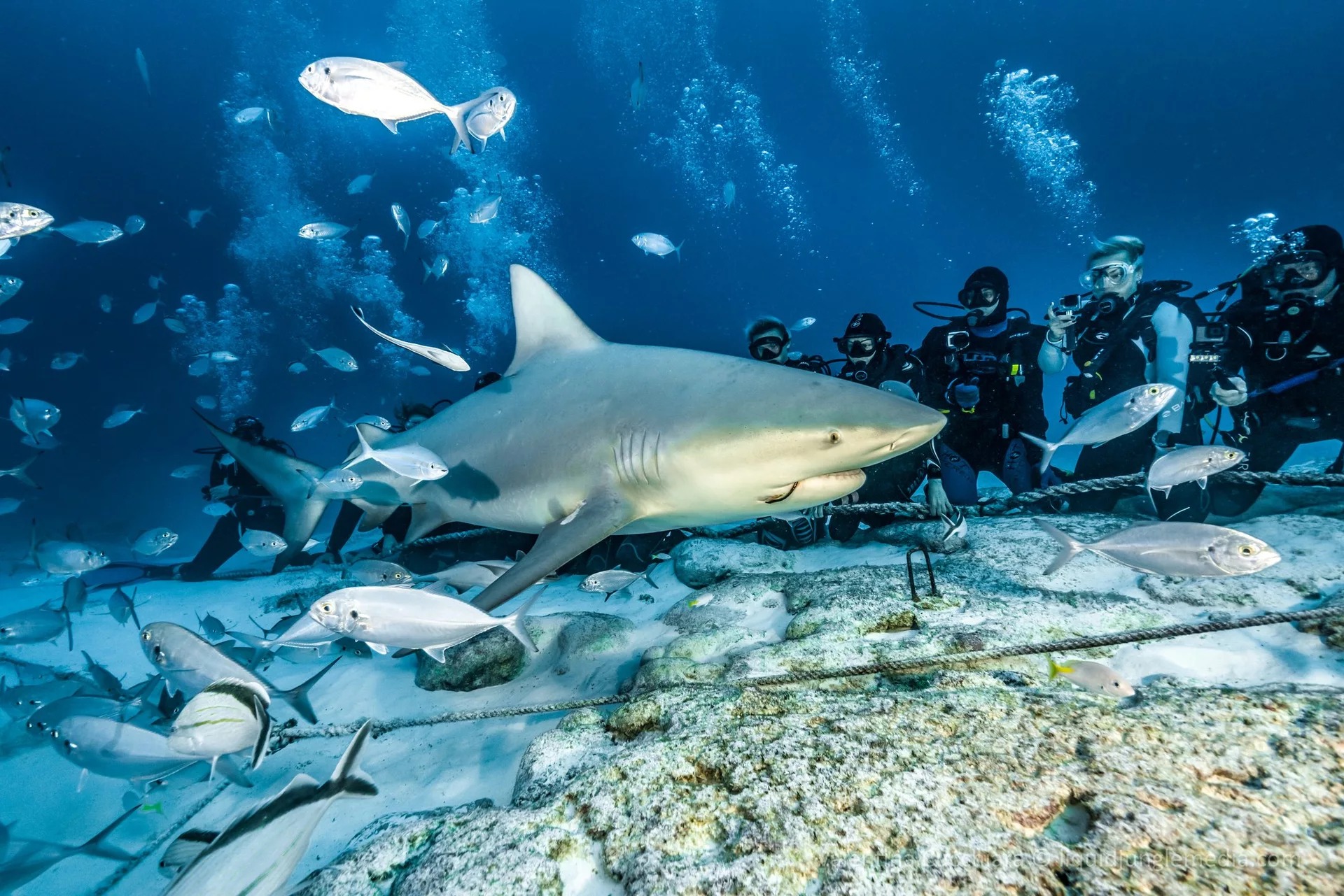 Descending to around 24 meters (80 feet), divers settle onto the sandy bottom while 12 to 15 bull sharks glide silently overhead — powerful, graceful, and surprisingly uninterested in humans. Some dives are passive observation dives, while others involve controlled, professionally managed baiting, allowing for unforgettable but respectful encounters.